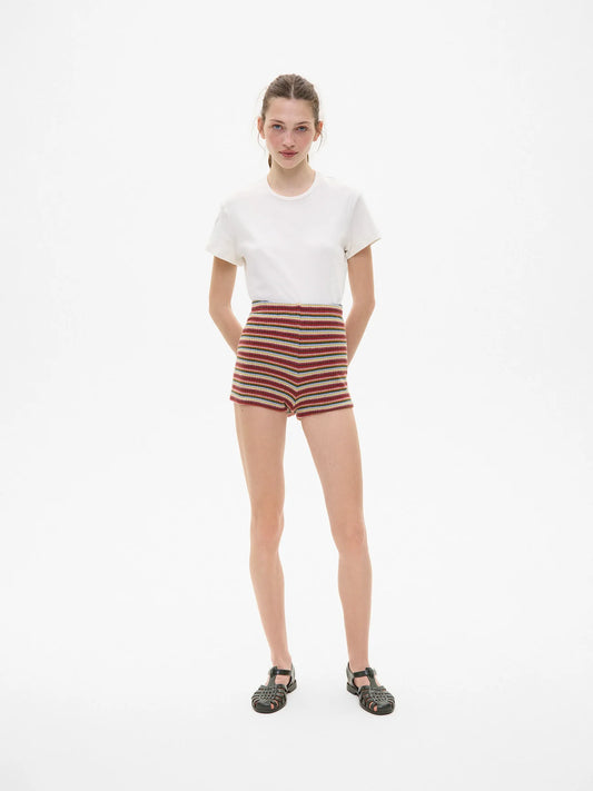 WOOL KNIT STRIPED SHORTS IN RED