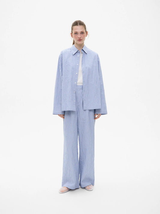 LIGHT BLUE STRIPED COTTON TROUSERS