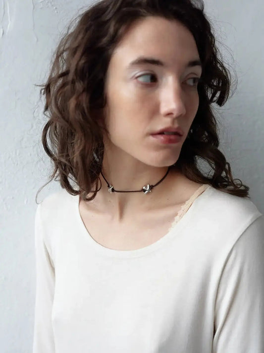 ERA BROWN NECKLACE WITH 4 SILVER BIRDS