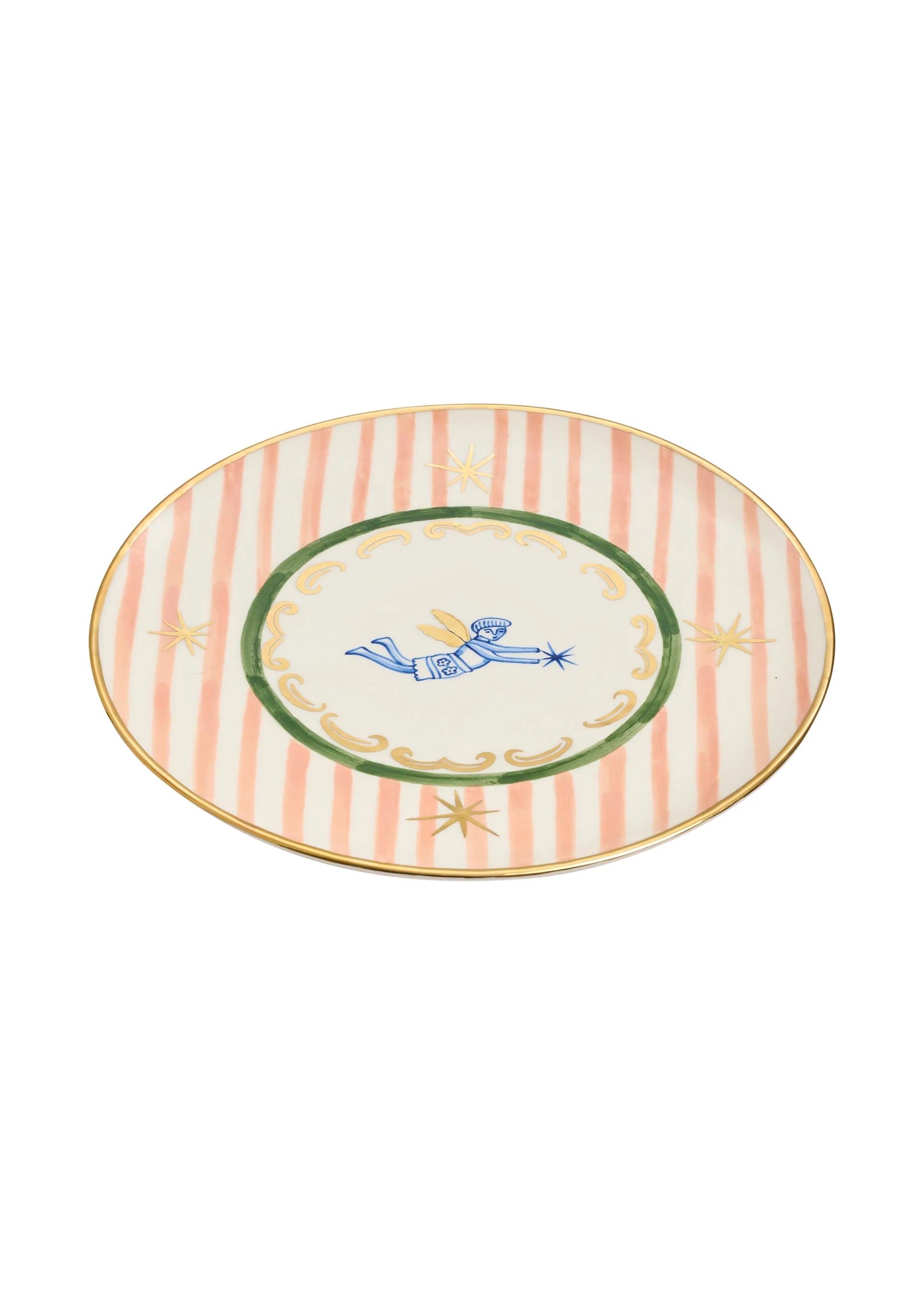 The painted design is inspired by motifs from a naïve embroidered rushnyk from the Chernihiv region of Ukraine and the optimism of a festive spirit. Each plate is crafted and painted by hand, with glaze and gilding, ensuring the uniqueness of the ceramic item, support for artisans, and the preservation of tradition. This symbolic piece is meant to become a meaningful and touching gift, a cherished family keepsake, or simply a beloved holiday object.